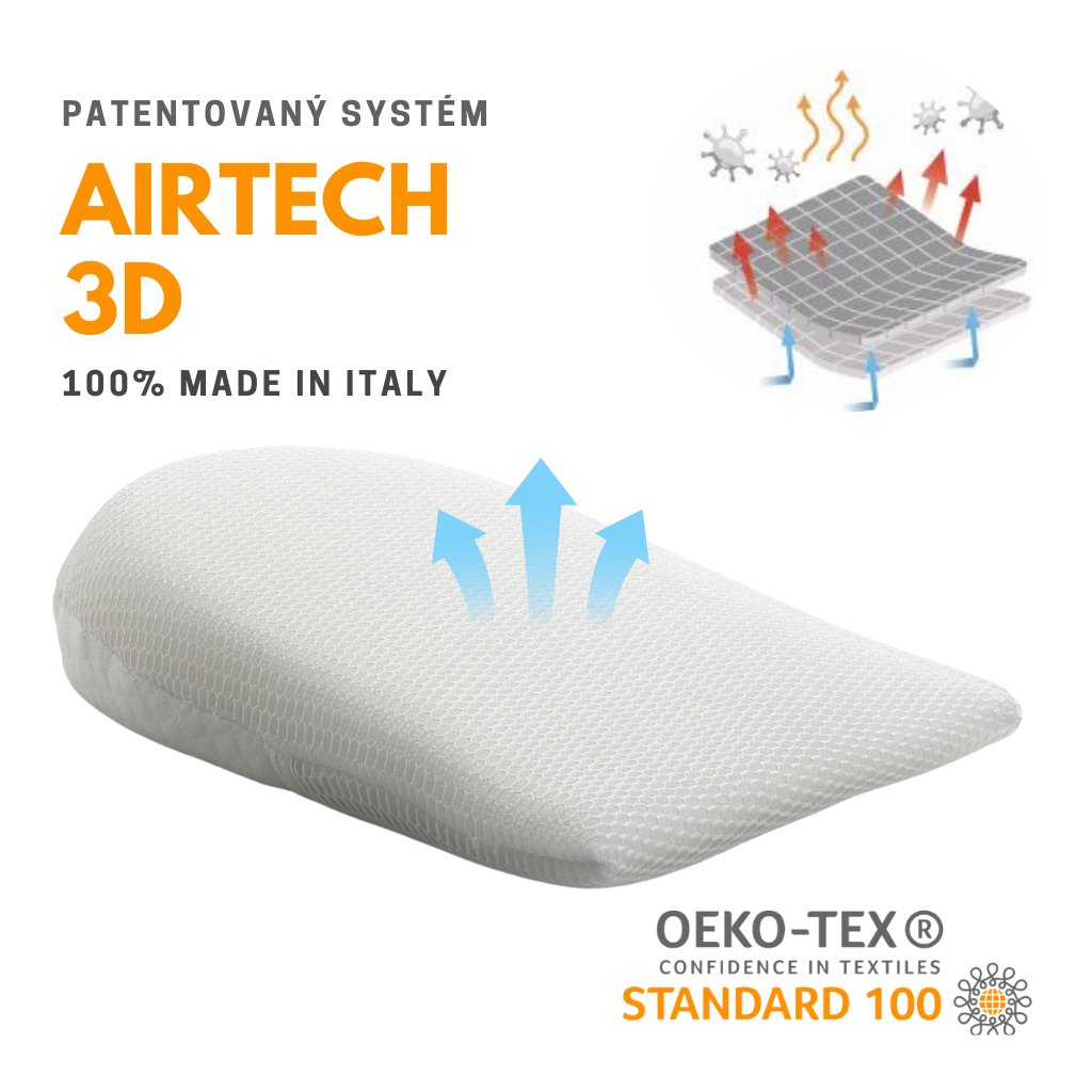Vankúšik, ktorý môže zachrániť život vášho bábätka – priedušný antirefluxný klinový vankúš AirTech 3D je nevyhnutným pomocníkom pre každú mamičku. Pomáha predchádzať nebezpečnému refluxu a zaisťuje pohodlný a bezpečný spánok vášho dieťatka. Jedinečná patentovaná technológia AirTech zaisťuje vynikajúcu priedušnosť, čím sa znižuje riziko potenia a hypertermia (prehriatie organizmu).