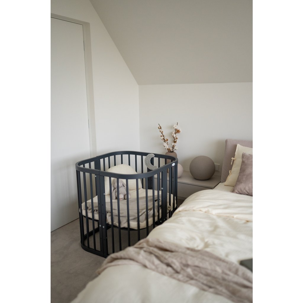 Rozšírená variácia detskej postieľky vám ponúka viac priestoru a flexibilitu. Poskytuje vám ďalšie pohodlie a pokoj pri dojčení dieťaťa.