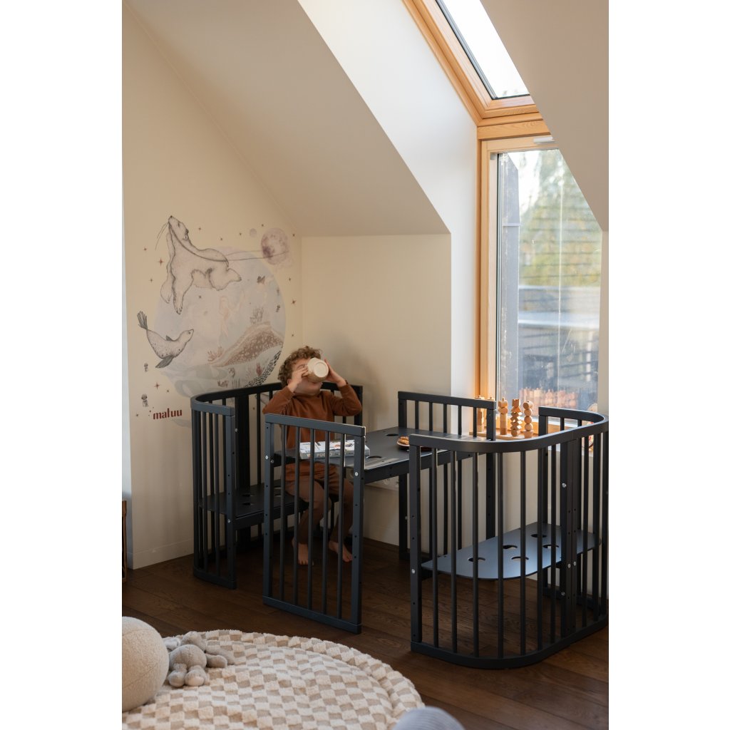 • Túto transformáciu je možné použiť aj ako samostatnú postieľku pre dieťa, ktoré už je schopné samo postieľku používať (teda chodí samo do postieľky)