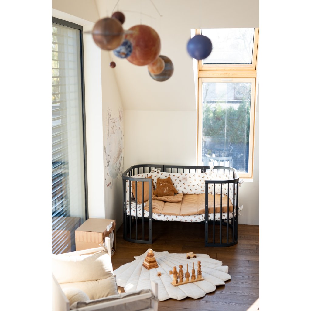 • Zaoblený tvar detskej postieľky podporuje psychickú rovnováhu a pripomína dieťaťu známe prostredie počas tehotenstva. To je dôvod, prečo je to záruka pokojného a zdravého spánku vášho dieťaťa.
