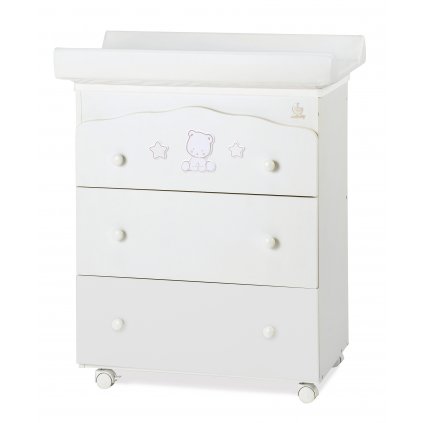 Praktická detská komoda s 3 priestrannými zásuvkami. Ku komode odporúčame dokúpiť prebaľovaciu podložku alebo externý drevený rám na PVC podložku.