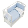 Balenie obsahuje: postieľka, kolieska, matrac a posteľný set ( mantinel, paplón, obliečku na paplón a obliečku na vankúš)