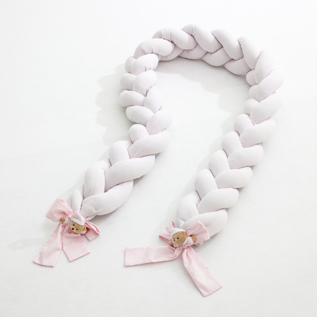 Tkaná redukcia do detskej postieľky Nanán zdobená romantickými mašličkami a sladkým plyšovým Pucciom. Medvedík Puccio tak stráži detské sny. Dostupný v 3 farbách.