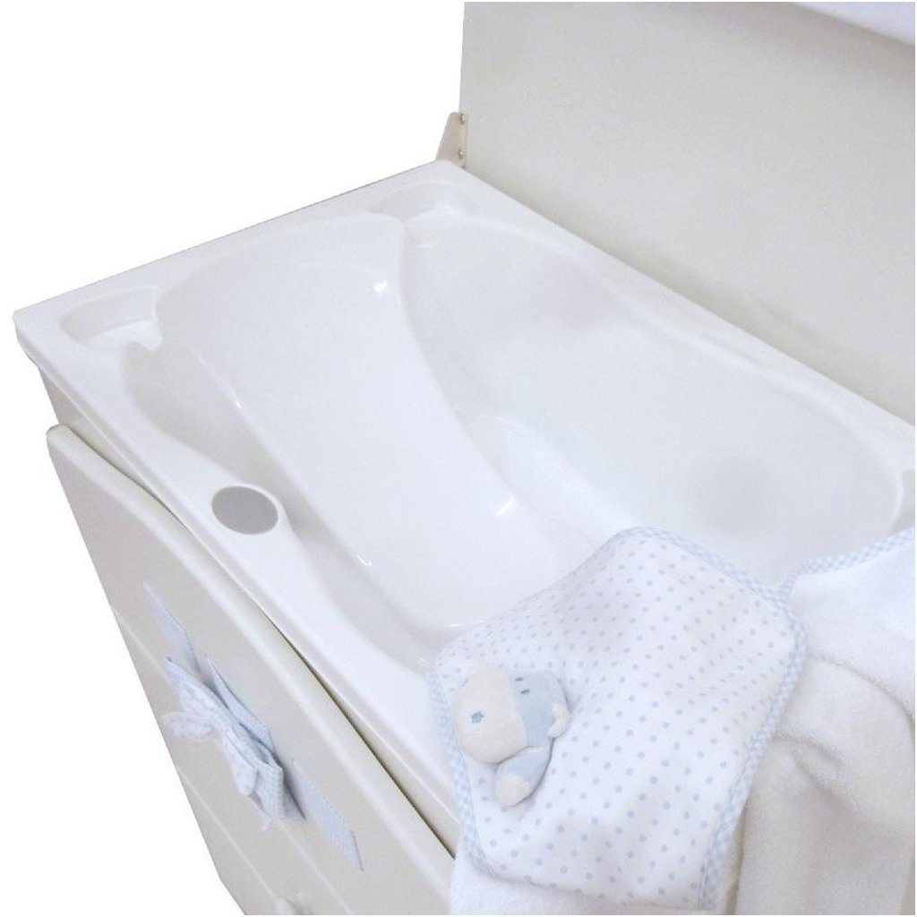 Nakoľko súčasťou pultu je praktická plastová vanička, môžete tento pult veľmi jednoducho využiť aj na kúpanie bábätka až do 12 mesiacov. Vanička je vyberateľná, preto môžete vaničku využívať aj samostatne alebo ako súčasť pultu. Vanička je ergonomicky a anatomicky tvarovaná s odkladacím priestorom na mydlo a sprchový gél. Jedna strana vaničky je určená pre novorodencov a opačná strana pre dieťa, ktoré už vie sedieť. Súčasťou je zátka, ktorou zamedzíte odtoku vody počas kúpania a plastová hadička, vďaka ktorej pohodlne vypustíte vodu z vaničky. Vanička je vyberateľná z pultu a po kúpeli viete vaničku jednoducho umyť a vysušiť.