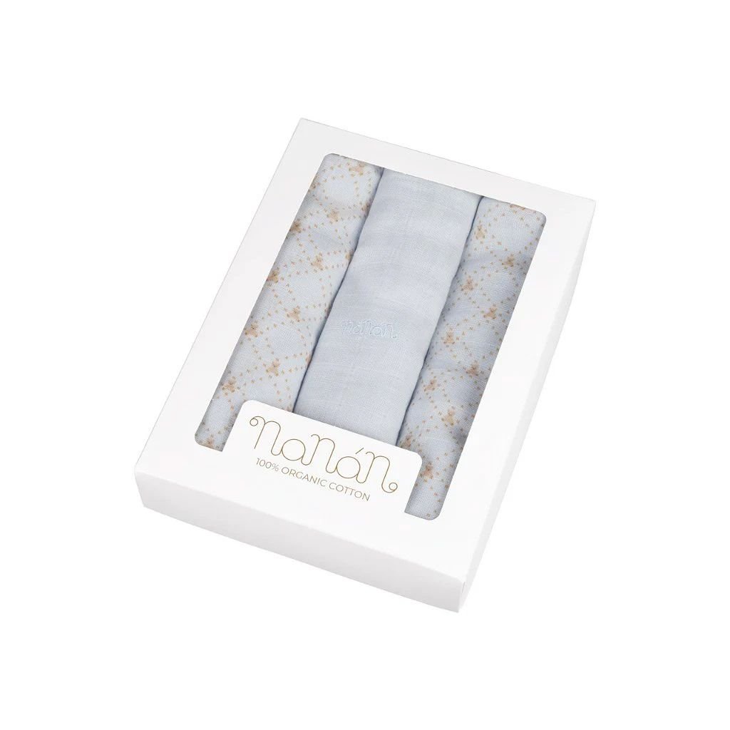 Nanán Set 3 ks mušelínových plienok 80x80 cm – modré | 100 % organická bavlna, prémiová kvalita