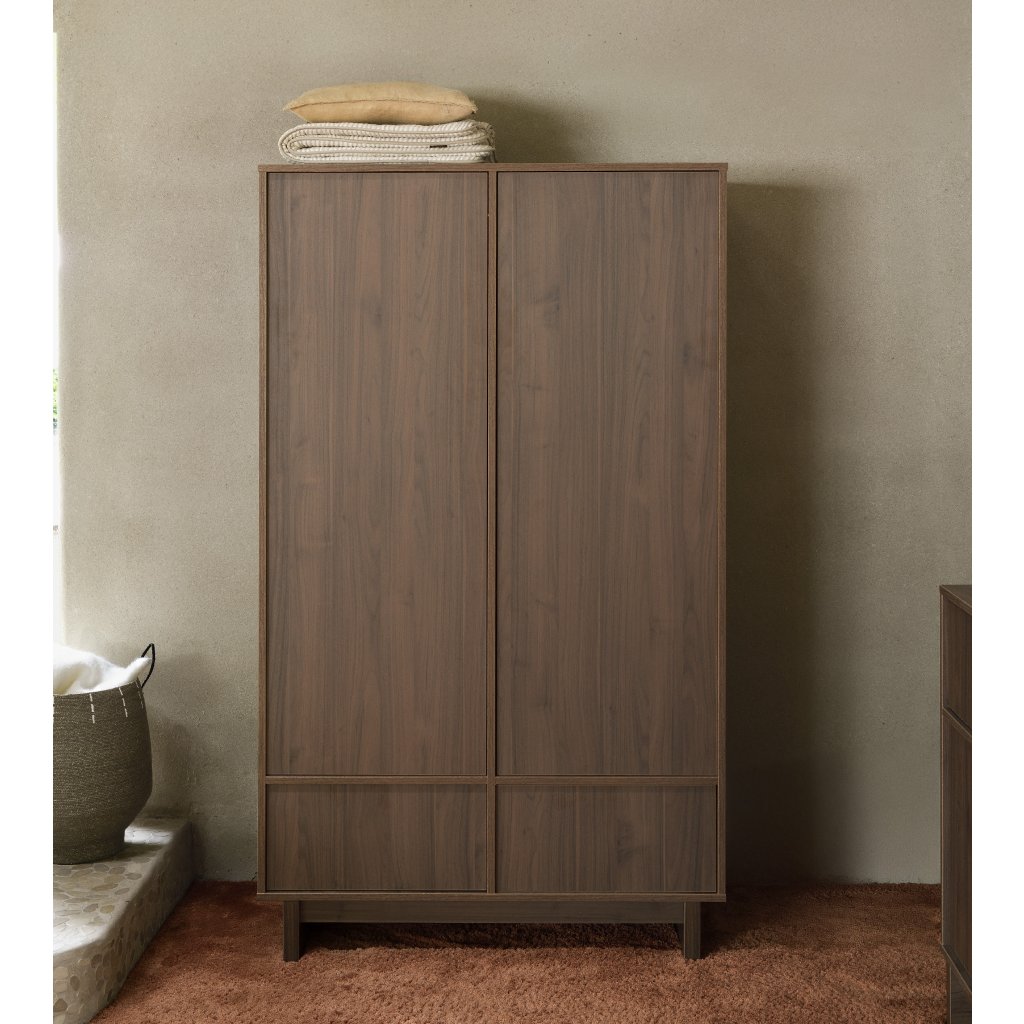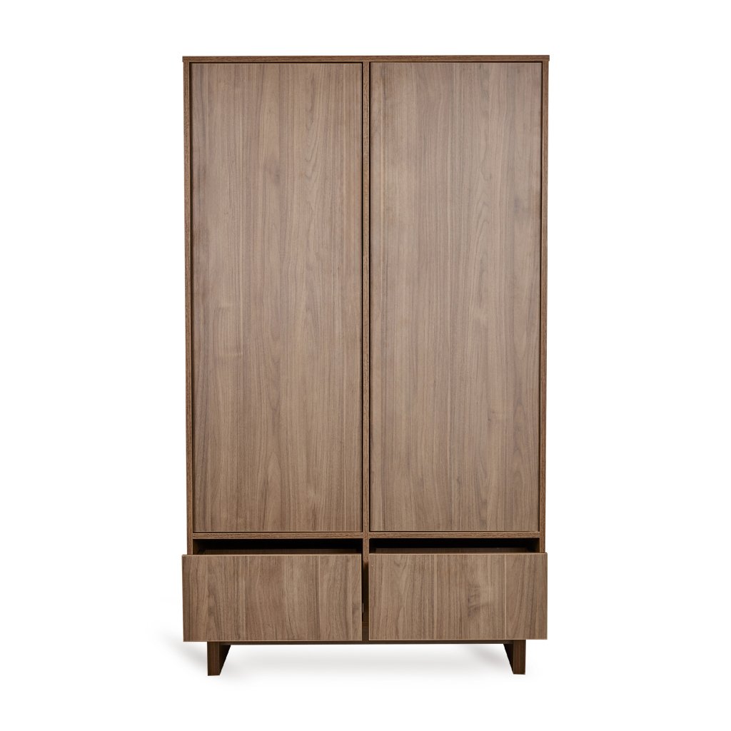Quax dvojdverová detská skriňa KYO vyniká svojím elegantným dizajnom, ktorý kombinuje moderné línie s teplými odtieňmi orechového dreva. Jej tvar a farby sú navrhnuté tak, aby ladili s každým interiérom.