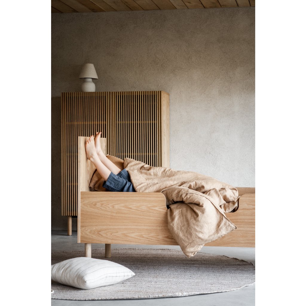 Junior Kit QUAX Hai No Ki umožňuje plynulý prechod z detskej postieľky na juniorskú posteľ – bezpečne, elegantne a bez narušenia dizajnu izby. Riešenie, ktoré rastie spolu s dieťaťom.